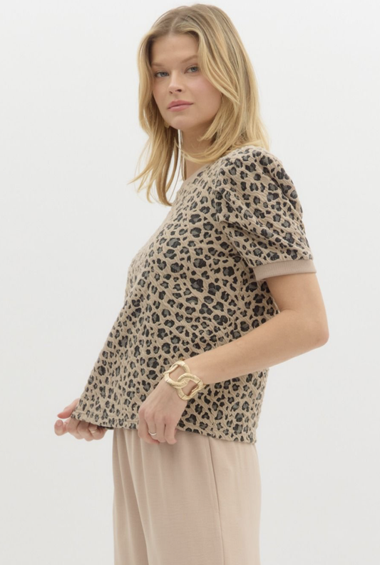 puff sleeve leopard banded top