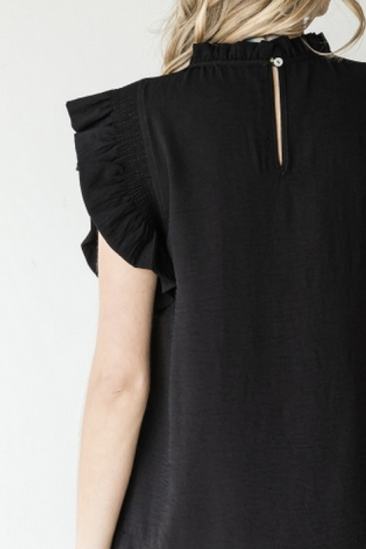 frill mock sleeve top | black