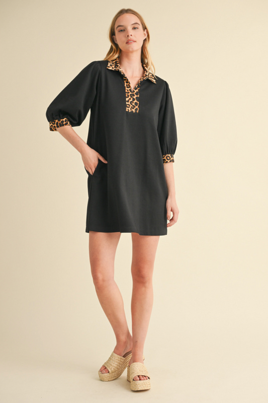 leopard contrast dress | black