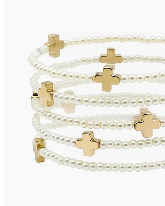 cross accent layered pearl bracelets