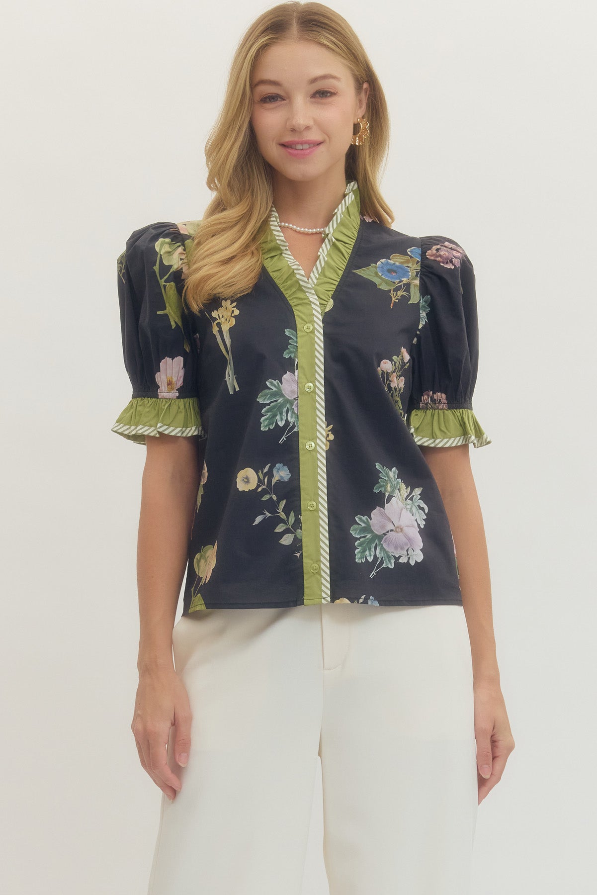 black ruffle sleeve flora top